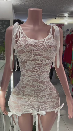 Transform into a vision of elegance with our Jade Lace Mini Dress. Crafted in delicate white lace and adorned with charming bows, this dress exudes sophistication.