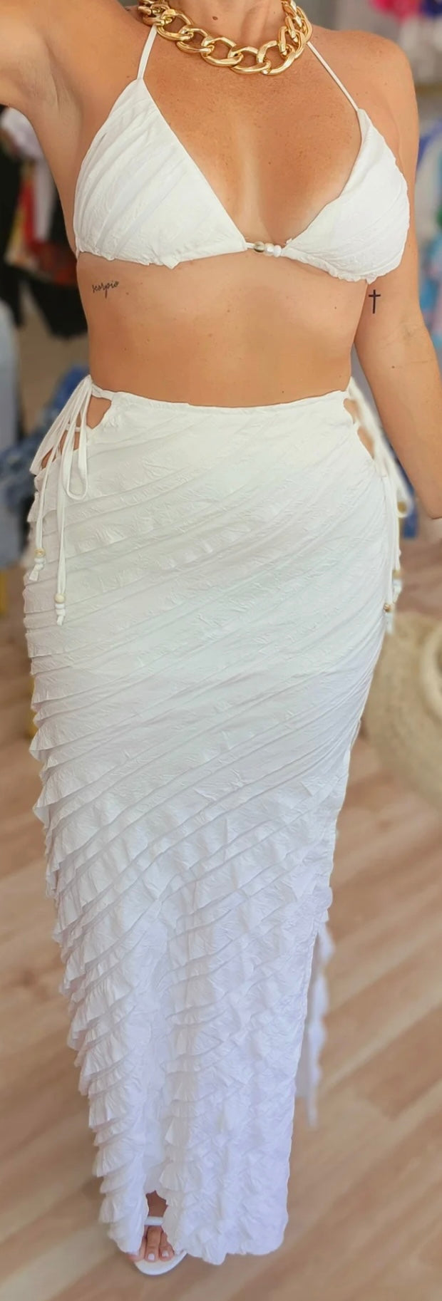 The Storm Skirt Set is a must-have for your next beach vacation. Made with a crisp white fabric, this set is perfect for any beachside event. Its lightweight material is ideal for warm weather, ensuring you stay cool and comfortable while still looking stylish. Don't miss out on this versatile and vacation-friendly outfit.